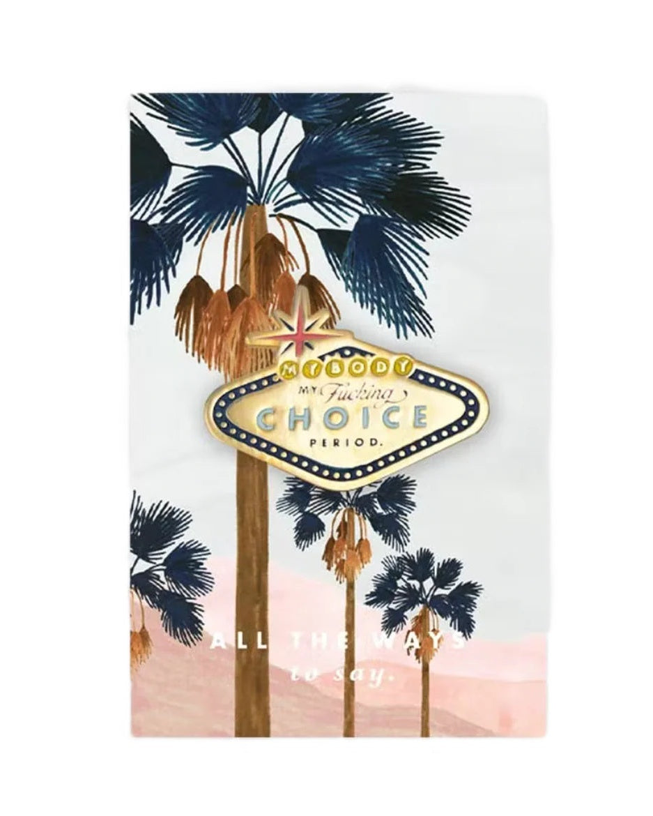 🌴 Pin's avec le message "My Body, My F** choice" de All the ways to Say, émaillé et présenté sur une jolie carte imprimée.