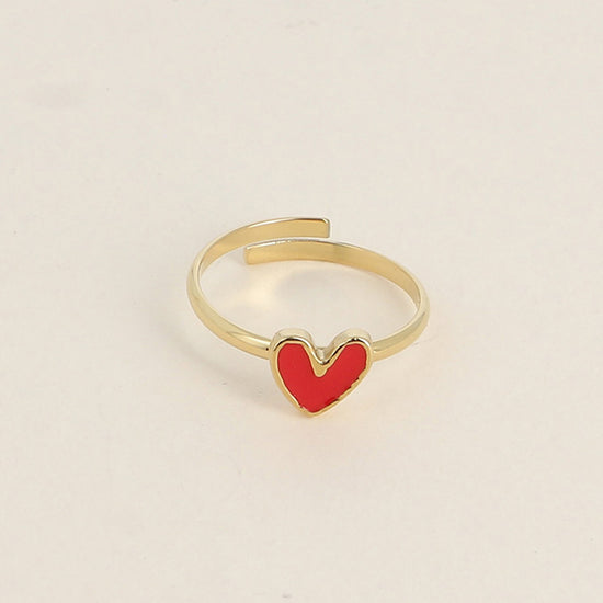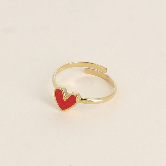 Bague en acier inoxydable et composée d'un petit coeur rouge en émail 💖.