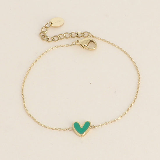 Bracelet en acier inoxydable composé d'un petit coeur en émail vert foncé 💚.