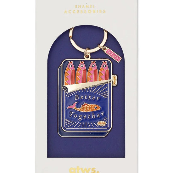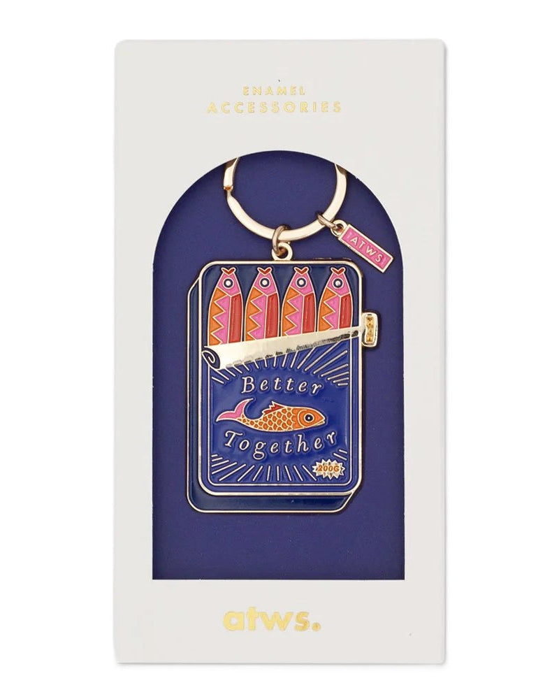 đ CĂ©lĂ©brez l'unitĂ© et l'amusement avec le porte-clĂ©s Better Together de All the ways to Say, illustrant des sardines entassĂ©es dans une boĂźte.