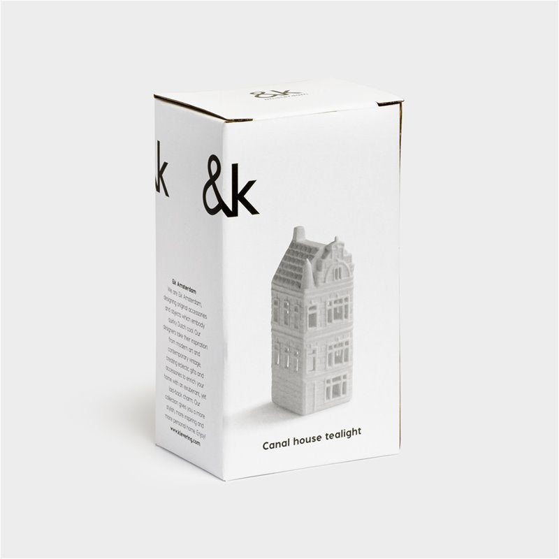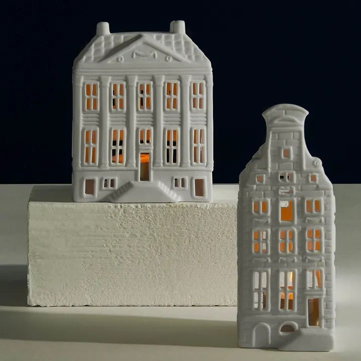 đ Photophore en porcelaine biscuit reprĂ©sentant les fameuses maisons des canaux d'Amsterdam.
