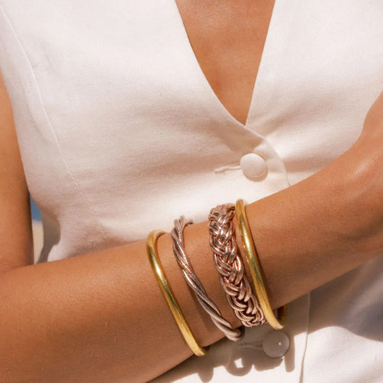 Craquez pour ce jonc souple tressé, à cumuler sur le poignet.