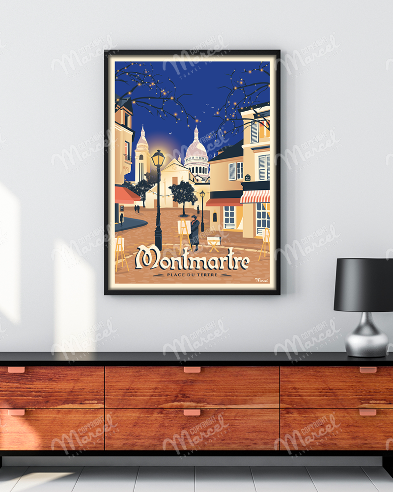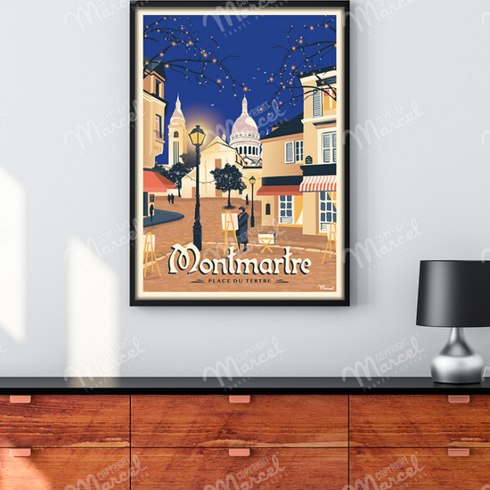 Laissez-vous porter par le charme bucolique parisien grâce à cette affiche originale MONTMARTRE « Place du Tertre ».