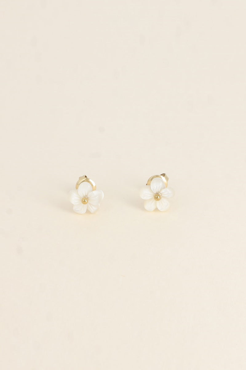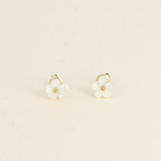 Boucles d'oreilles à puce en acier inoxydable composées d'une petite fleur nacrée 🌼.