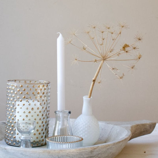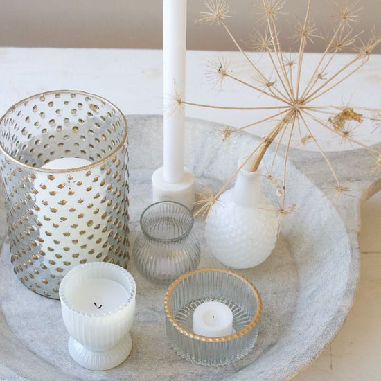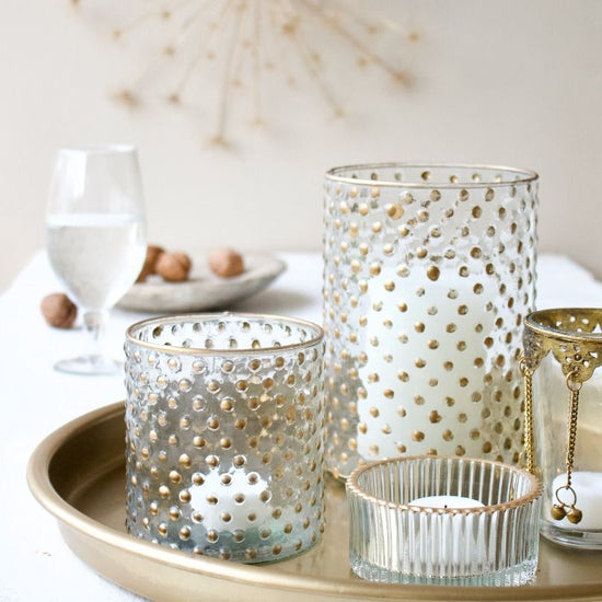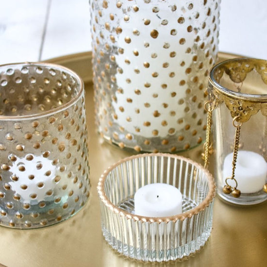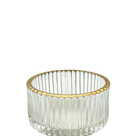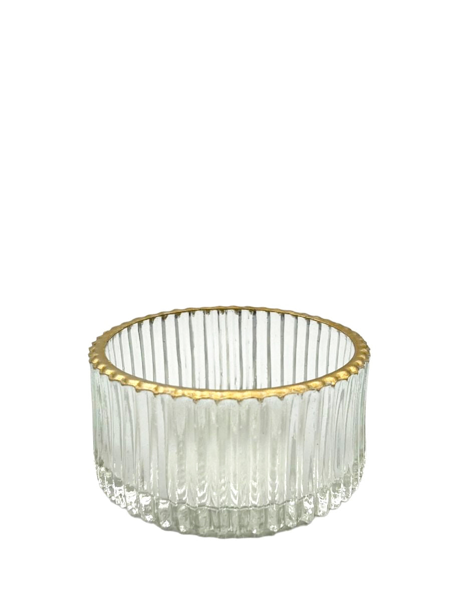 🕯️ Porte-bougie en verre facetté, fait main et avec un joli liseré doré.