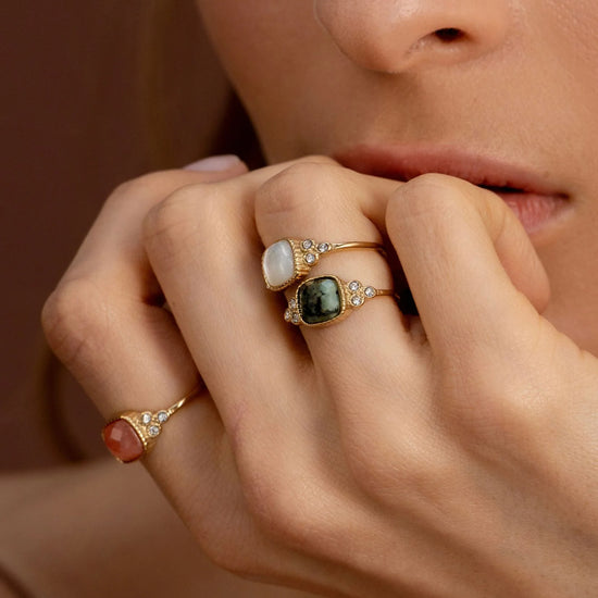 Ajustable, la bague se resserre ou s'agrandit : de la taille 50 à 56.