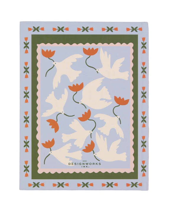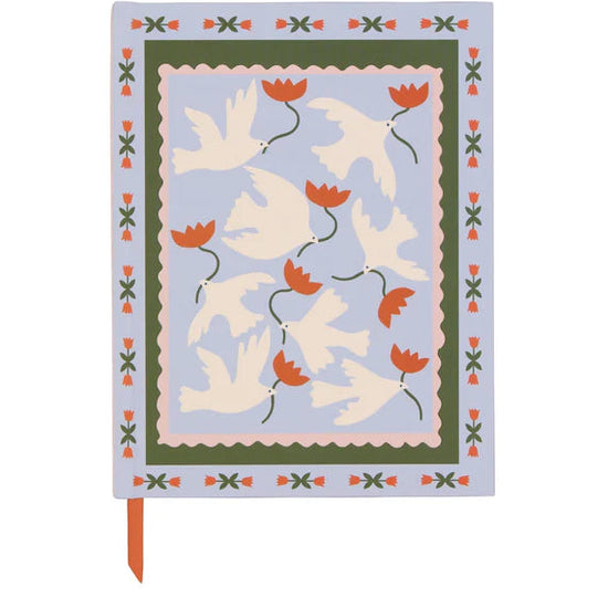 🕊 Cahier épais imprimé fleuri avec des oiseaux, couverture rigide, au toucher doux et marque page sous forme de ruban coloré.