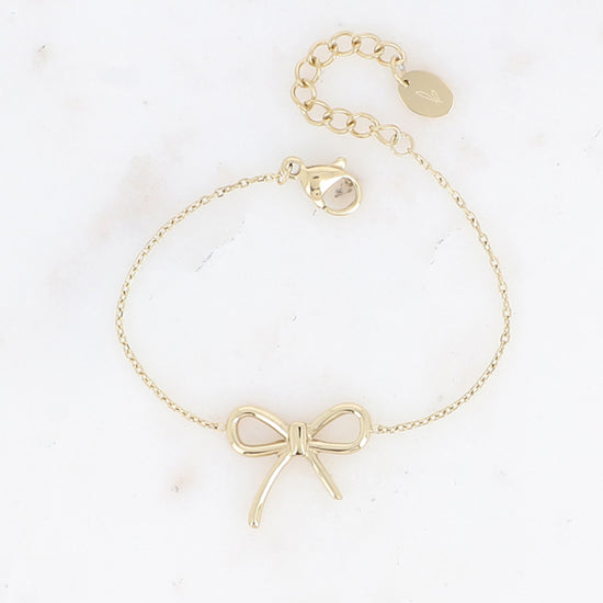 Bracelet taille enfant, composé d'une fine chaîne en acier inoxydable avec un joli noeud papillon 🎀.
