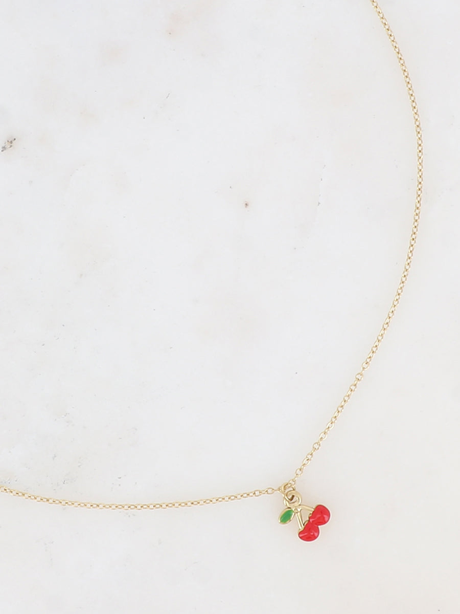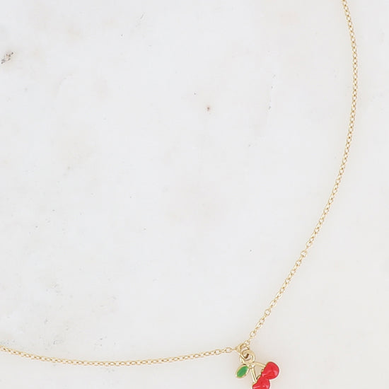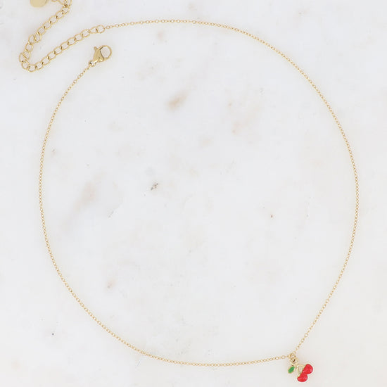 Collier en acier inoxydable composé d'un pendentif cerise en émail 🍒.