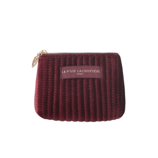 Petite pochette avec soufflet en velours matelassé couleur bordeaux, intérieur doublé coton.