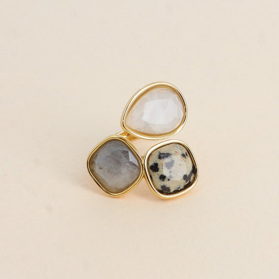Bague Idrissa - Agate blanche, Jaspe dalmatien et Labradorite