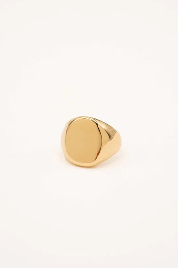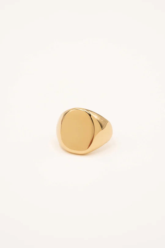 Bague en acier inoxydable en forme de chevalière.