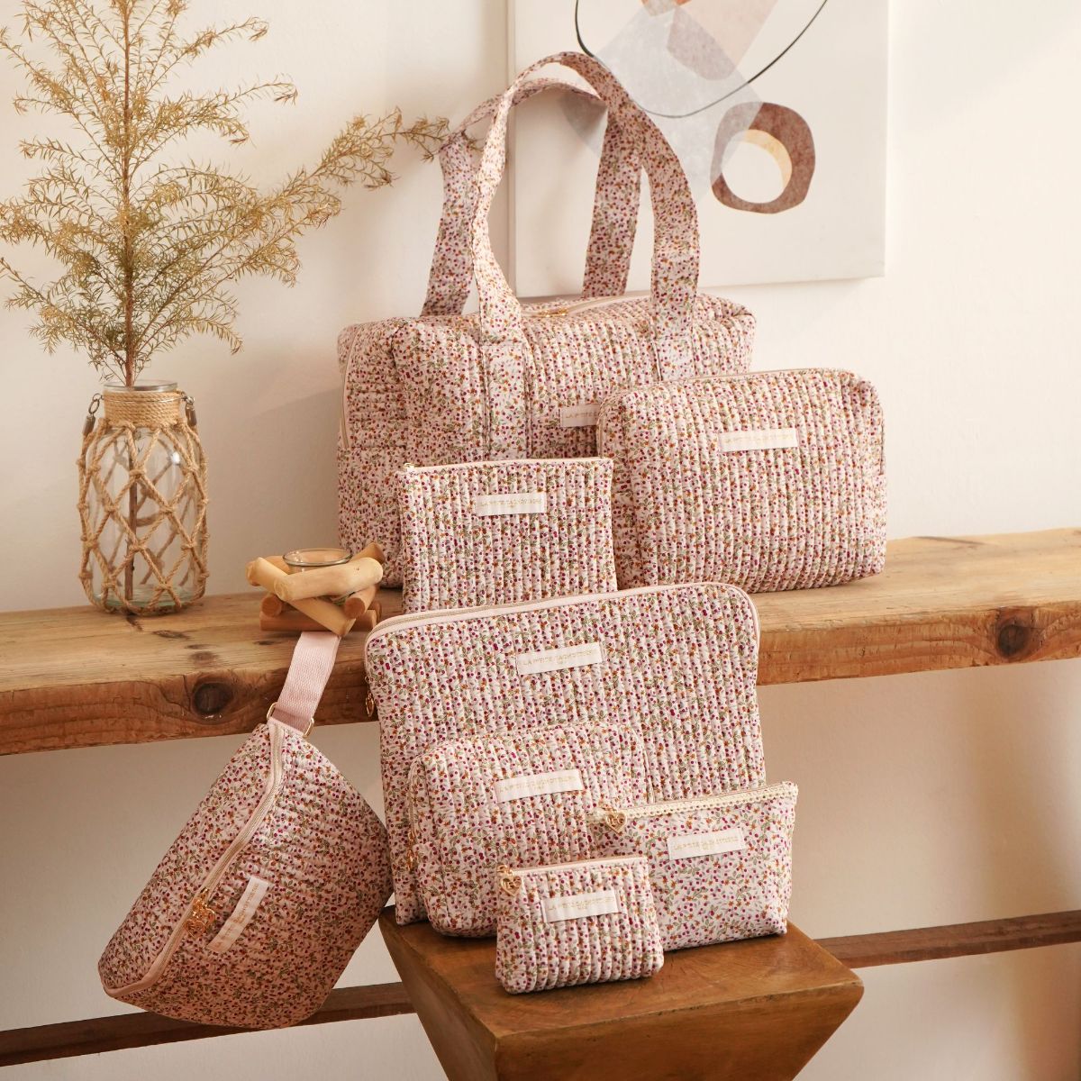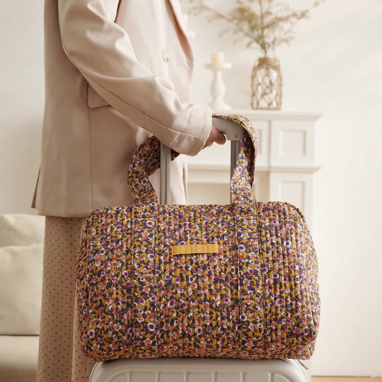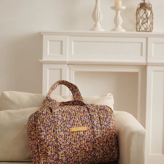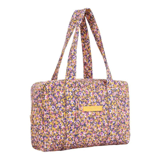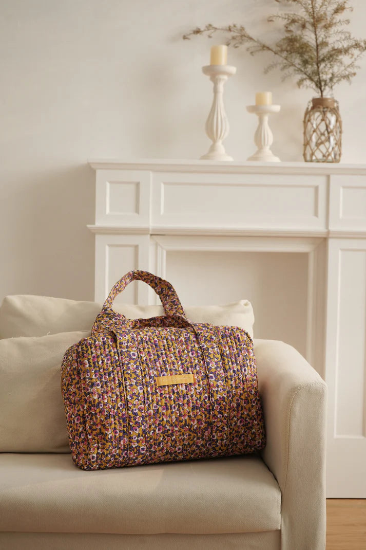Grand sac rectangulaire en coton matelassé imprimé fleuri.