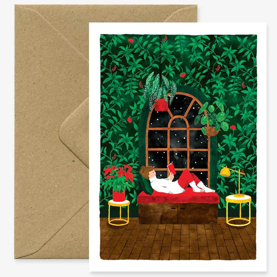 Jolie double carte postale imprimée avec une enveloppe en papier recyclé.