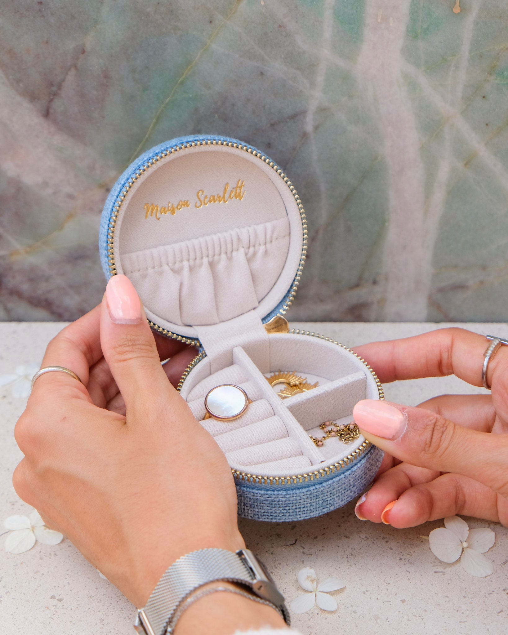 Yvonne effet lin est la boîte à bijoux de voyage idéale et deviendra sans nul doute l’alliée de toutes vos aventures !