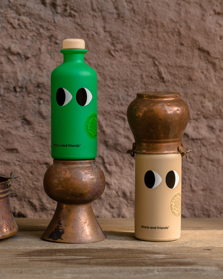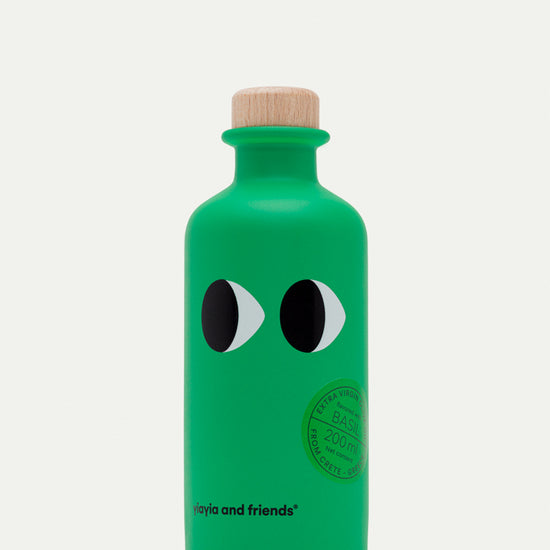 Huile d’olive extra vierge Yiayia & Friends, à faible acidité et à haute valeur nutritionnelle, avec une savoureuse touche de basilic.