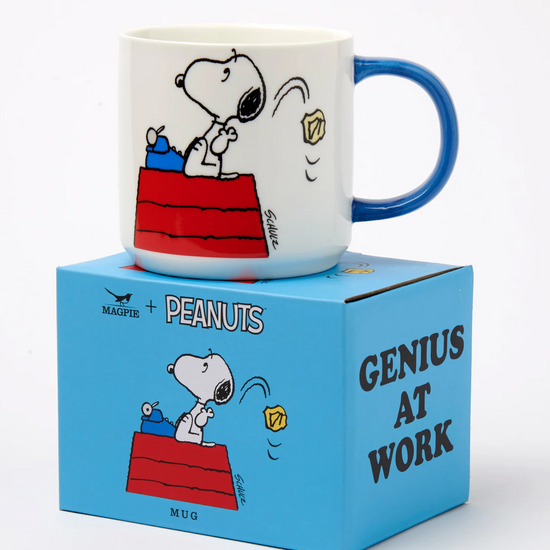 đ” Grande tasse avec Snoopy et le message "Genius at work".