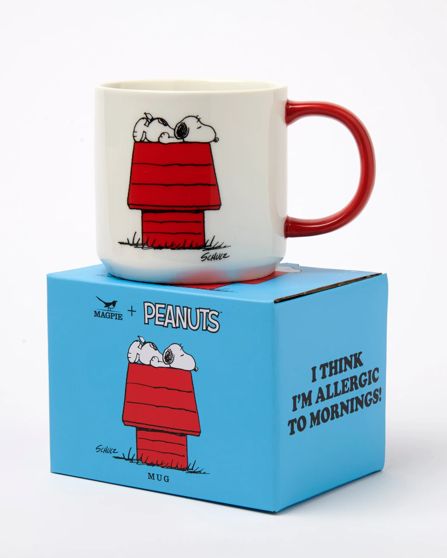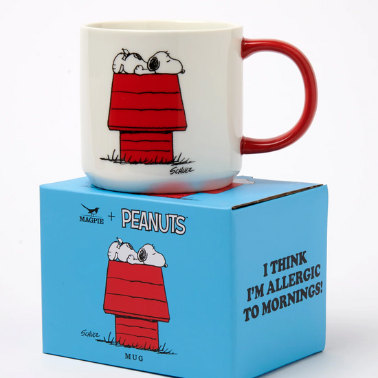 đ” Grande tasse avec Snoopy et le message "Allergic to mornings".