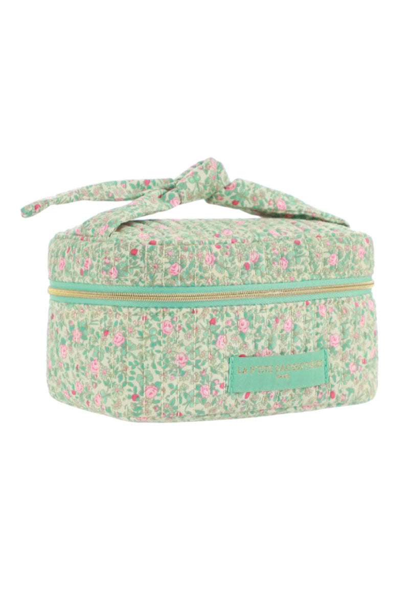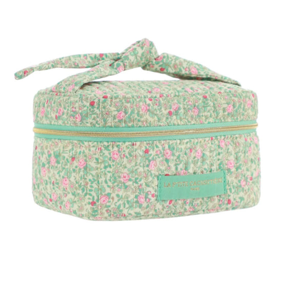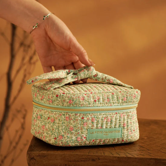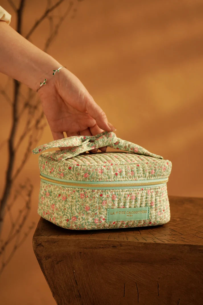 Vanity rectangulaire en coton matelassé imprimé fleuri.