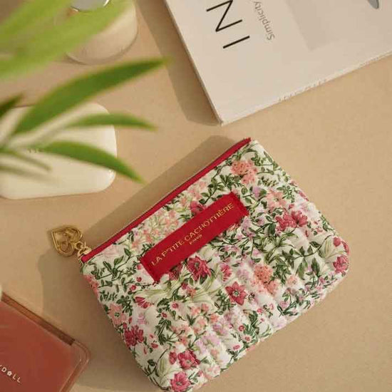 Petite pochette avec soufflet en coton matelassé imprimé fleuri.