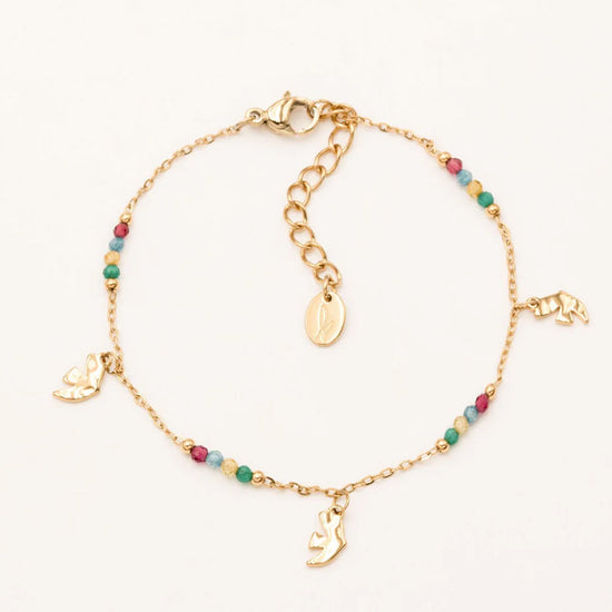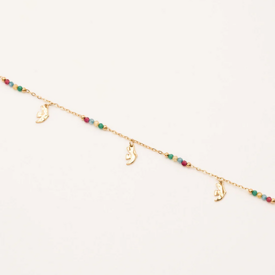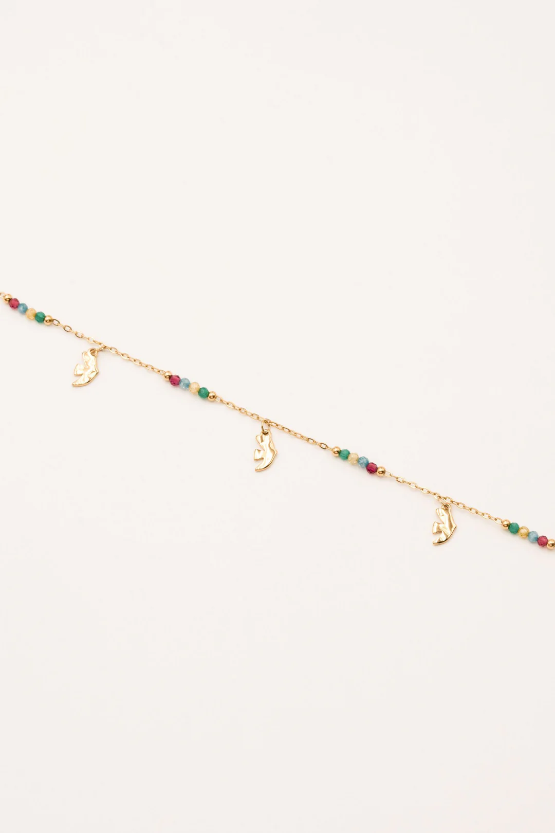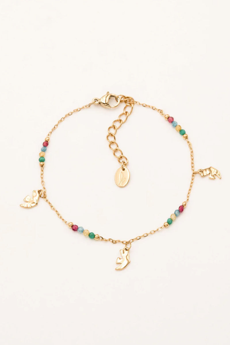 Bracelet sur chaîne composé d'une fine maille avec des petites perles de cristaux et des pampilles oiseaux 🕊.