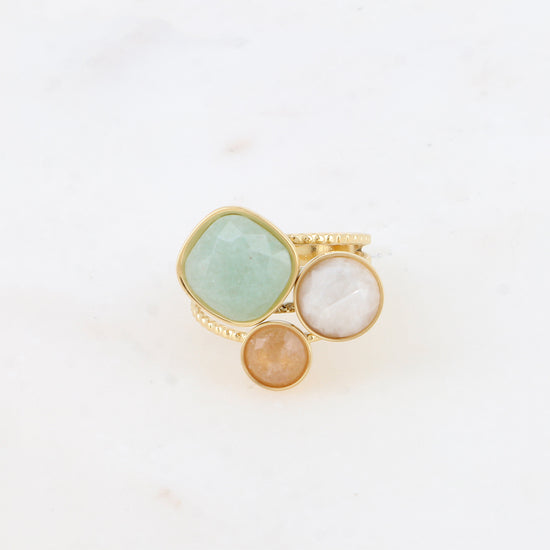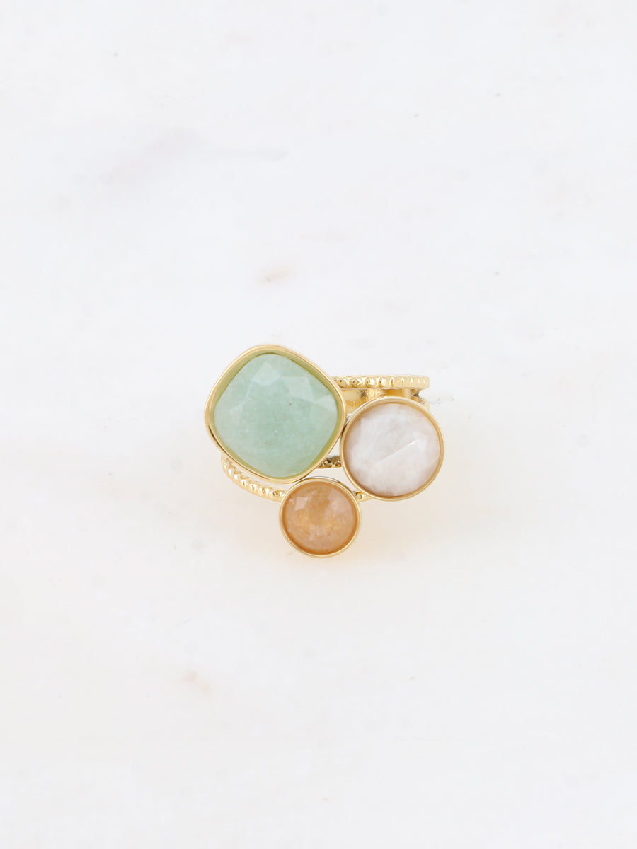 Bague Trilogie - Aventurine, agate blanche, quartz fraise