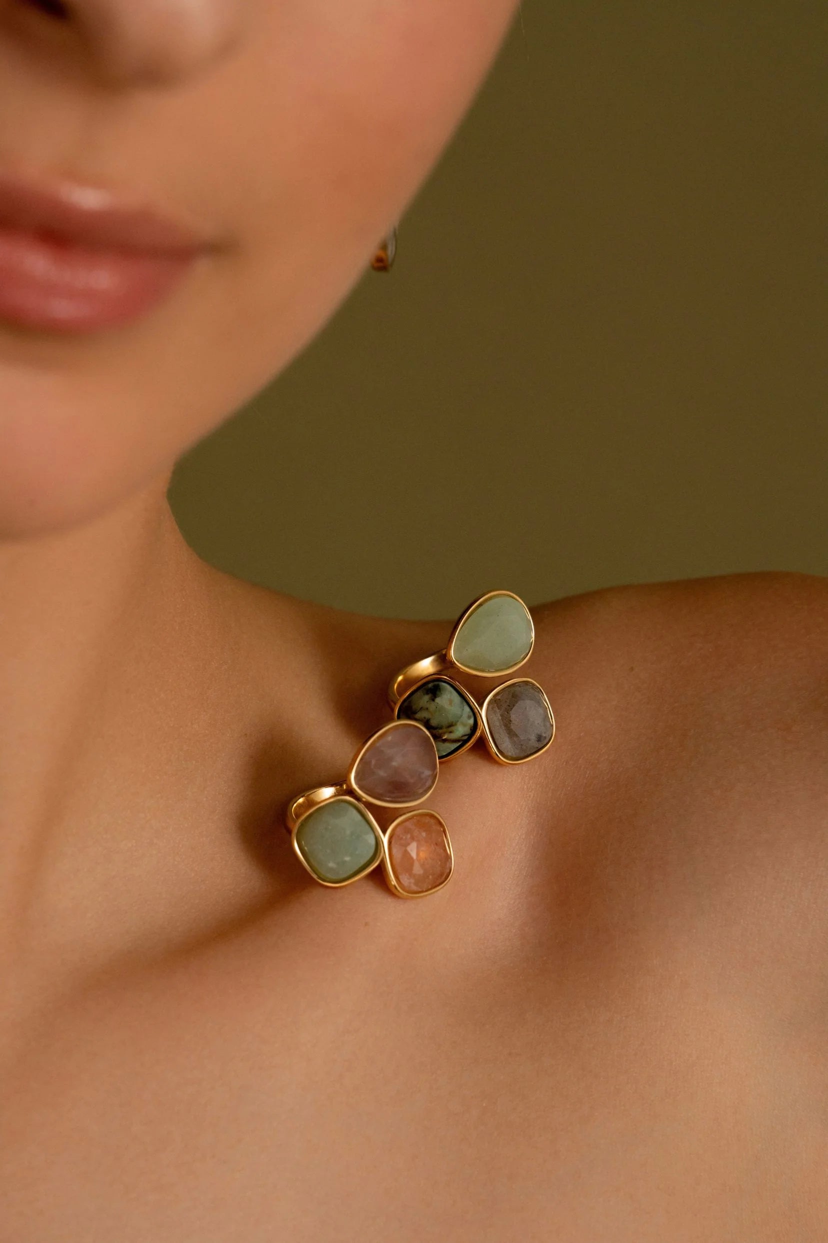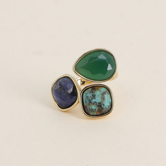 Bague Idrissa - Agate verte, turquoise africaine, agate bleue