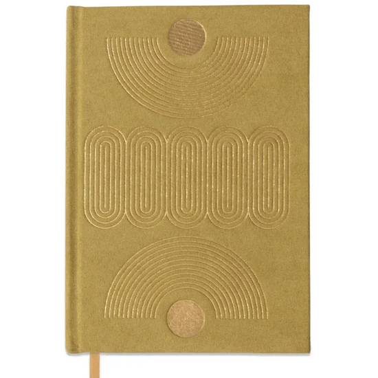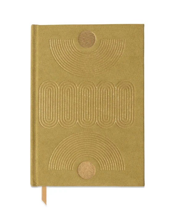 🥑 Cahier A5 uni vert clair avec des lignes très graphiques et dorés.