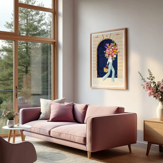 Un moment parisien figé dans le temps. Porte parisienne met en scène une femme se promenant dans les rues de Paris, portant un magnifique bouquet de fleurs. 💐