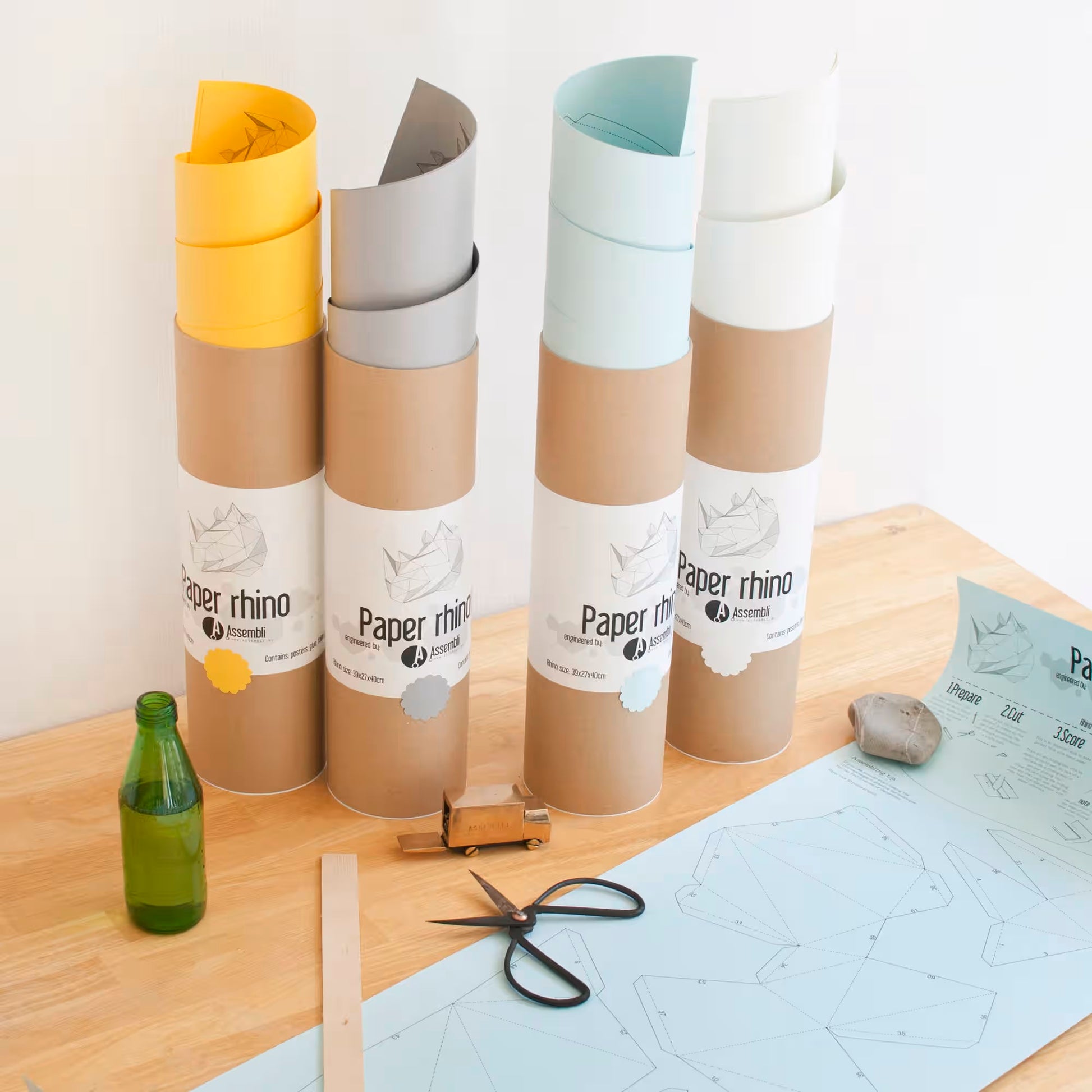 🦏 Un rhinocéros sous forme de kit pour créer un grand trophée mural de papier.