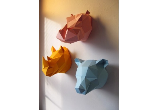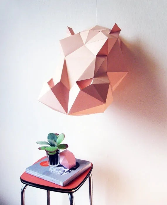 🦛 Un Hippopotame sous forme de kit pour créer un grand trophée mural de papier.