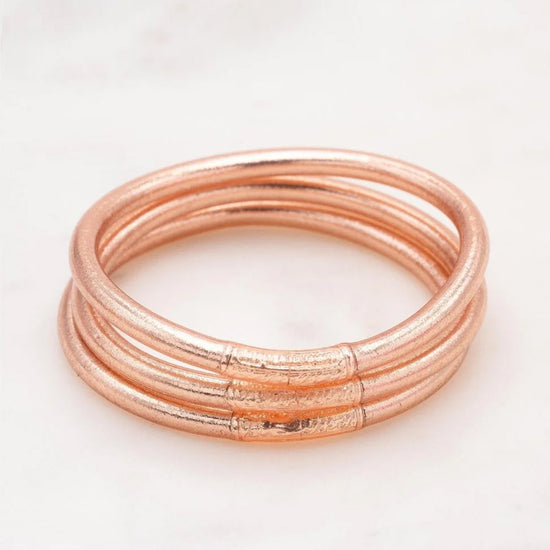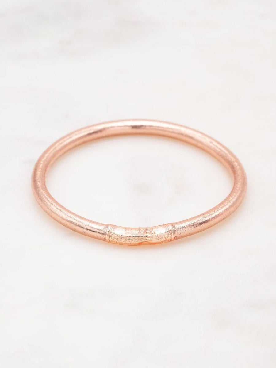 Craquez pour ce jonc souple transparent rempli de feuilles dorées décoratives, scellé avec un mantra gravé "Bonheur, Chance, Fortune et Amour" en thaïlandais. A cumuler sur le poignet.