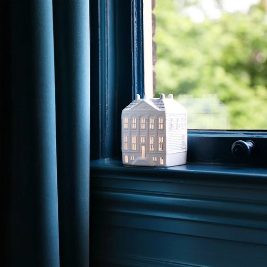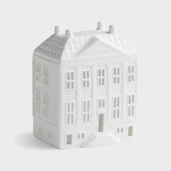 đ Photophore en porcelaine biscuit reprĂ©sentant les fameuses maisons de maĂźtres d'Amsterdam.