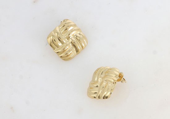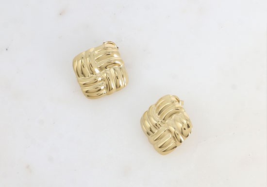 Boucles d'oreilles à puce en acier inoxydable composées d'un carré effet damier tressé.