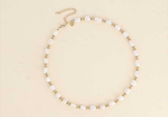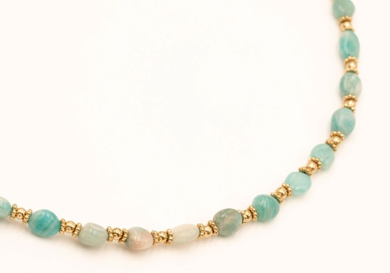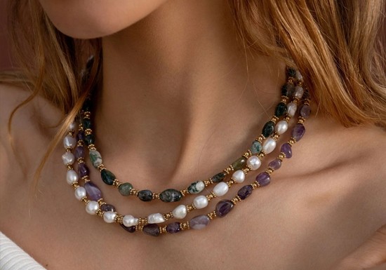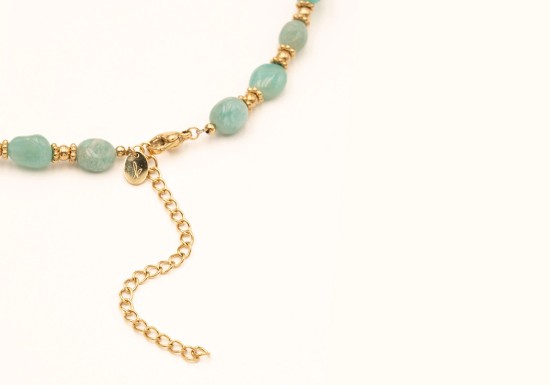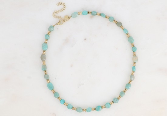 Collier composé de pierres naturelles et de perles en acier inoxydable.