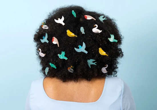 Une sublime petite hirondelle colorée en guise de barrette à cheveux !