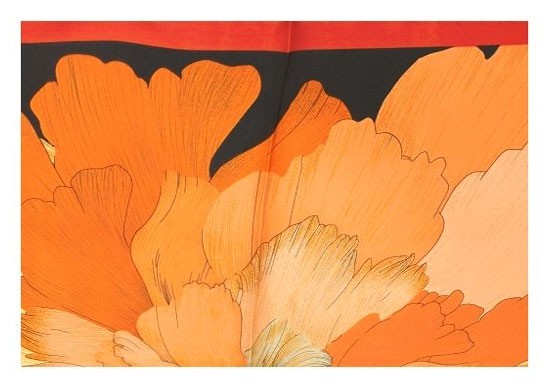 Petit carré satiné avec de grosses fleurs orangées. A mettre dans les cheveux ou autour du cou.