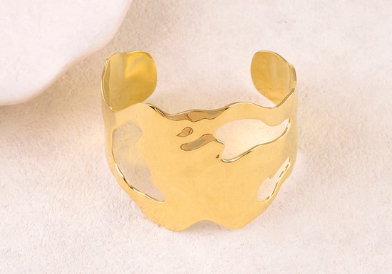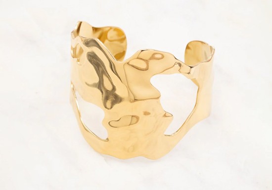 Bracelet type manchette graphique malléable texturée avec un jeu d'ajourages.