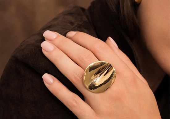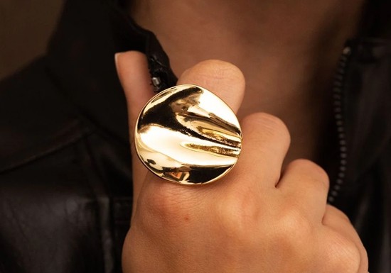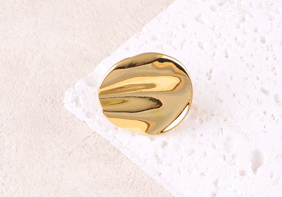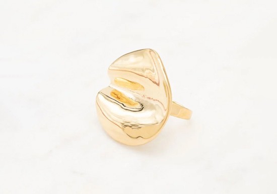 Bague ajustable composée d'une grande pièce géométrique ondulée.