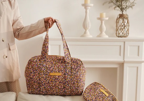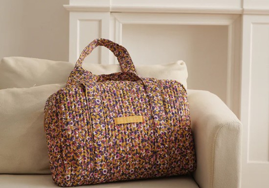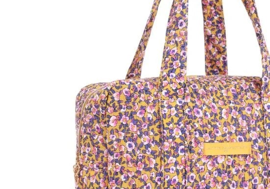 Grand sac rectangulaire en coton matelassé imprimé fleuri.