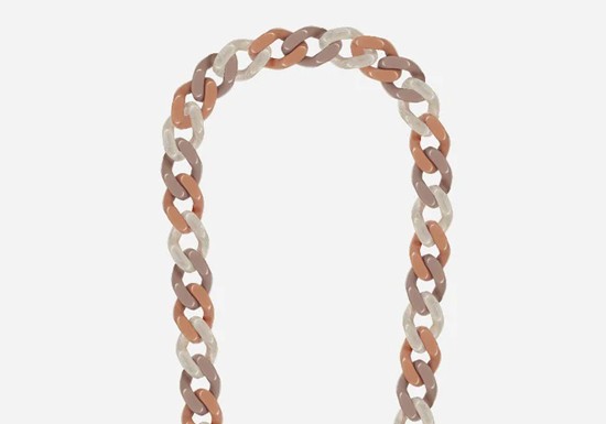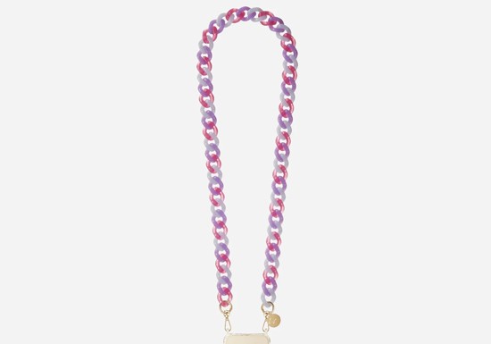 Chaîne en résine colorée (à choisir dans le menu déroulant), longue de 120 cm, se clipsant sur les coques à anneaux ou les adaptateurs avec ses mousquetons dorés.