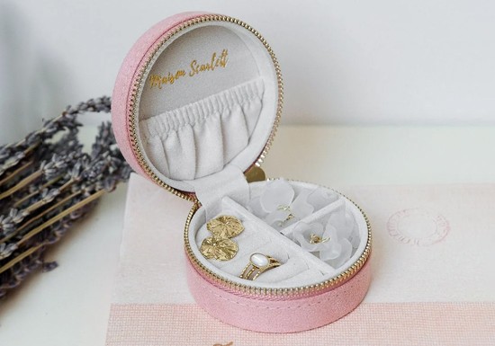 Son revêtement intérieur en velours ultra-doux vous permettra d’emporter vos bijoux favoris dans vos déplacements du quotidien tout en les protégeant parfaitement lorsque vous ne les portez pas.