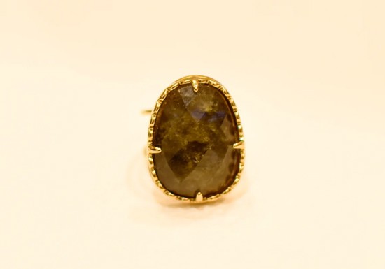 Bague composée de deux anneaux et d'un cabochon avec une pierre de Quartz noir.