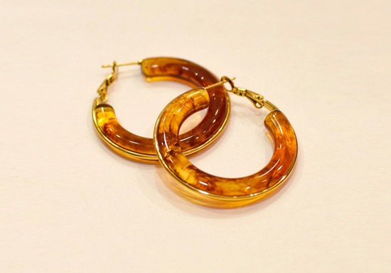 Grande boucles à puces, dorées en forme de créole toute légère en résine colorée.