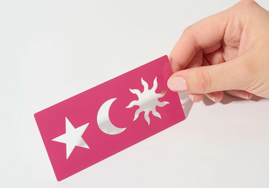 3. décollez doucement votre pochoir de votre peau, essuyez-le et replacez-le sur son support.
