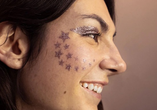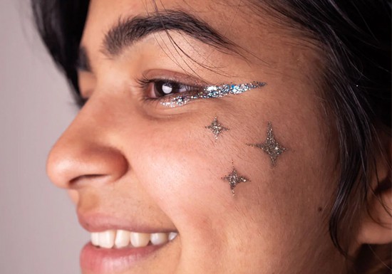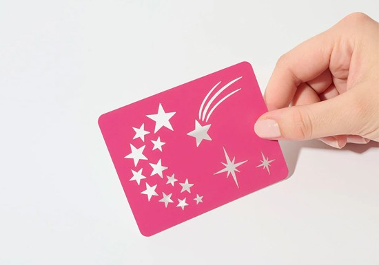 Ajoutez de sublimes tatouages pailletés étoilés à votre make-up avec le pochoir Étoiles réutilisable de Si Si la Paillette !