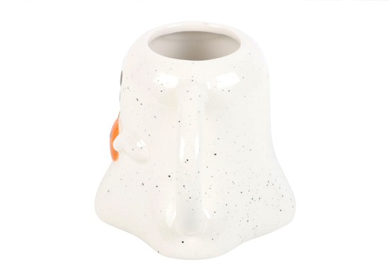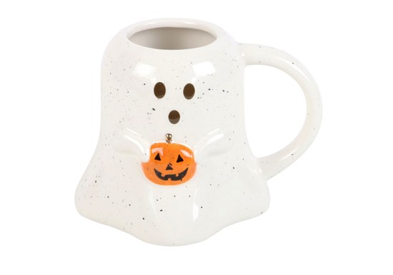 Avec une petite citrouille orange dans ses mains fantomatiques et une finition mouchetée, ce mug sera un ajout bienvenu à toute collection de mugs d'Halloween.