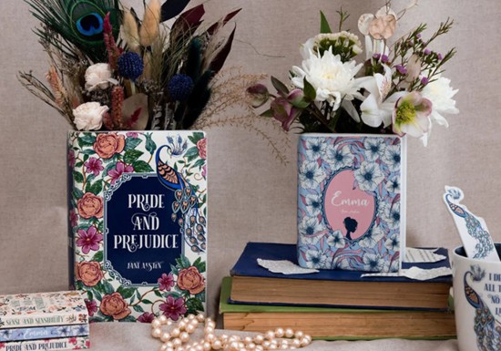 La marque propose des vases en céramique en forme de livre reprenant les grands classiques anglais ou les contes de notre enfance.